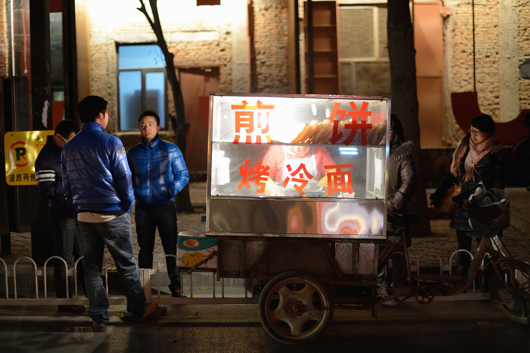 Jianbing ist eines der besten chinesischen Straßenessen. Schon die Zubereitung ist ein Kunstwerk. Auf einem dünnen crèpe-artigen Pfannkuchen wird ein Ei aufgeschlagen und verteilt, darüber werden Koriander und Frühlingszwiebeln gestreut. Nach dem Wenden wird er mit süßer und scharfer Soße bestrichen und mit der Wunderzutat belegt: einem Viereck aus knusprig frittiertem Teig. Dann wird der Jianbing zusammengefaltet und ist bereit zum Verzehr. Oh, welch Köstlichkeit!